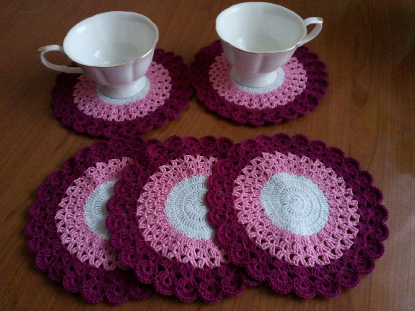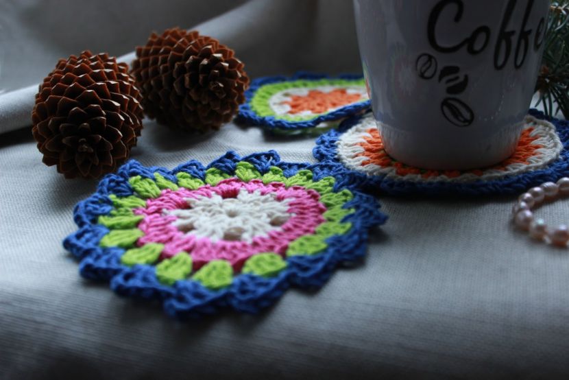 Прекрасная подложка в форме розочки без труда создается с помощью крючка. В итоге, изделие достигает двадцати сантиметров в диаметре. Для создания этого изделия подготовьте: