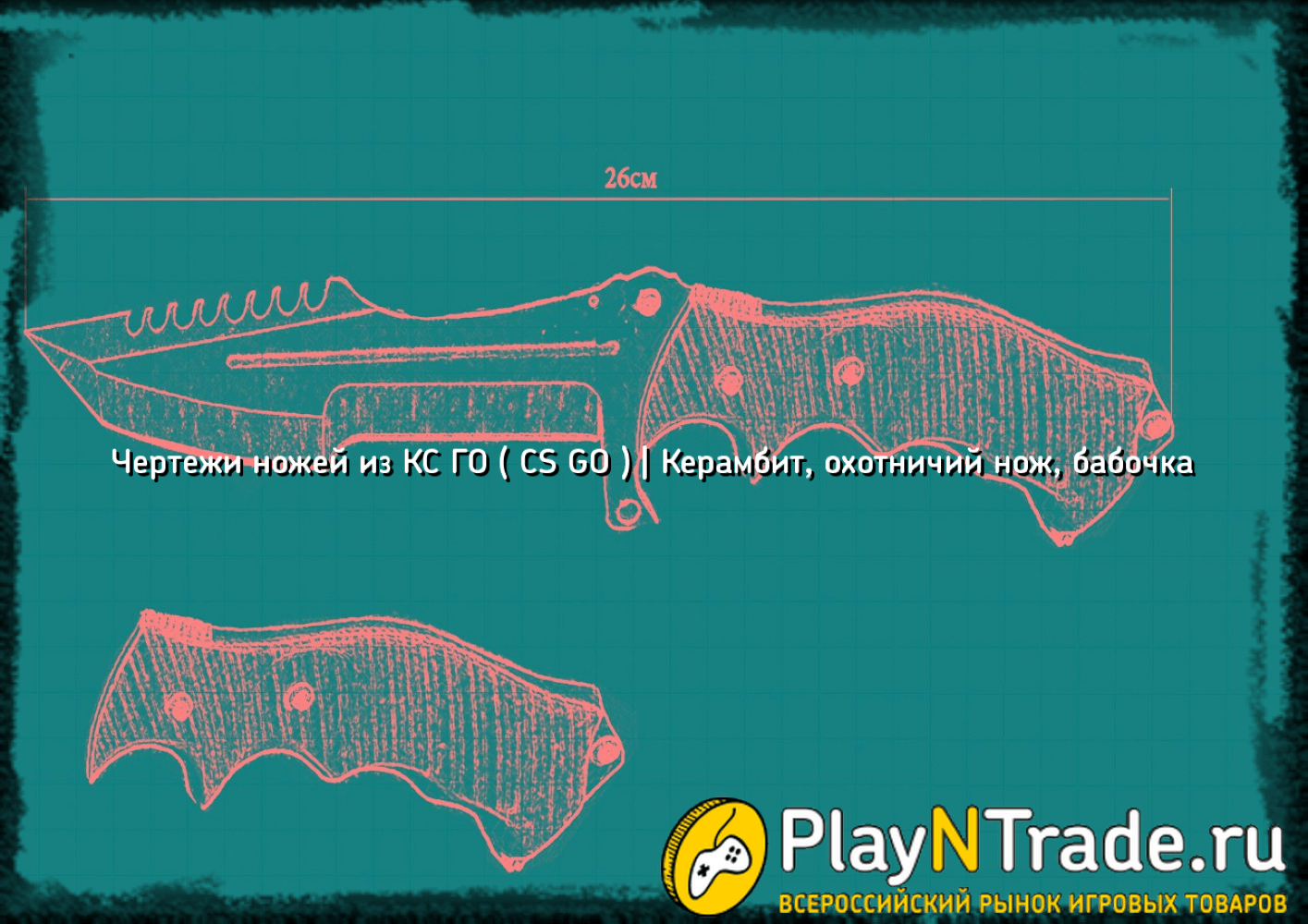 Из этой статьи Вы узнали чертежи ножей из кс го, следующих knife: Керамбита, бабочки и охотничий нож, а так же была предоставленная иллюстрация уже с готовыми издельями. Удачи! До скорых встреч на популярном сайте PlayN_Trade!