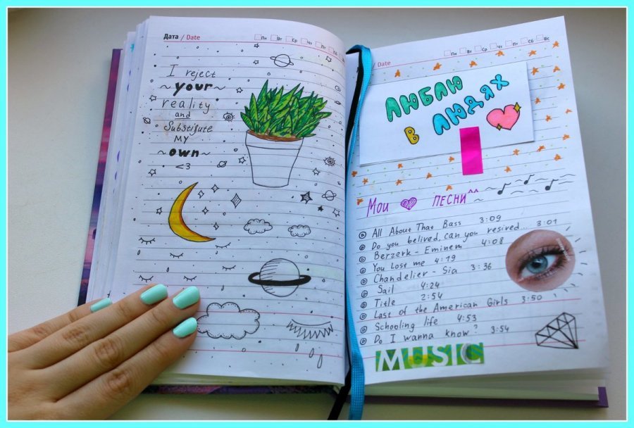 - Идеи для личного дневника – это полезная, увлекательная работа. Благодаря ей вы сможете развить собственное воображение, фантазию. Вы создадите свое творение быстро и красиво.