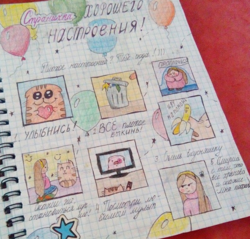 Рекомендуется использовать яркие цвета, потому что пастель не затеряется на фоне дневниковых записей и других картинок.