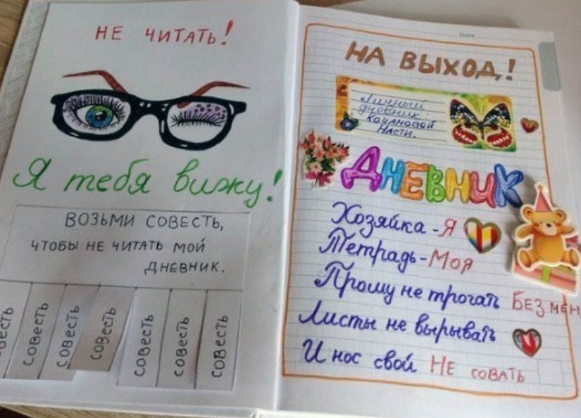 - Чтобы украсить собственный личный дневник, можете воспользоваться авторскими рисунками, цветными либо черно-белыми распечатками, смайликами, наклейками и так далее. Если у вас есть способность по написанию стихов, вы увлекаетесь хенд-мэйд, обожаете рисовать, тогда для вас оформление дневника станет увлекательной работой.