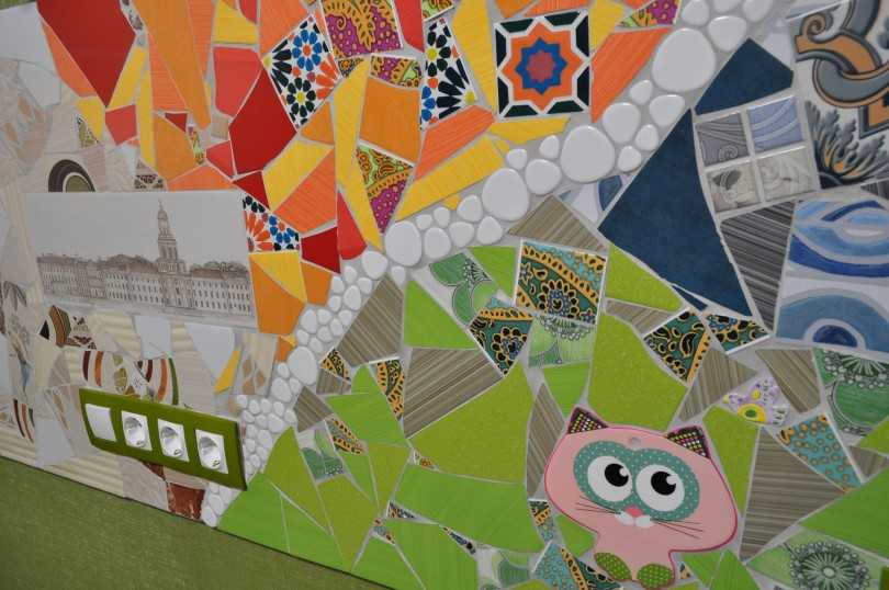 По этой технике можно создать любую картинку по заранее подготовленному шаблону. Мозаика украсит стены, мебель и органично вольётся в ваш интерьер.