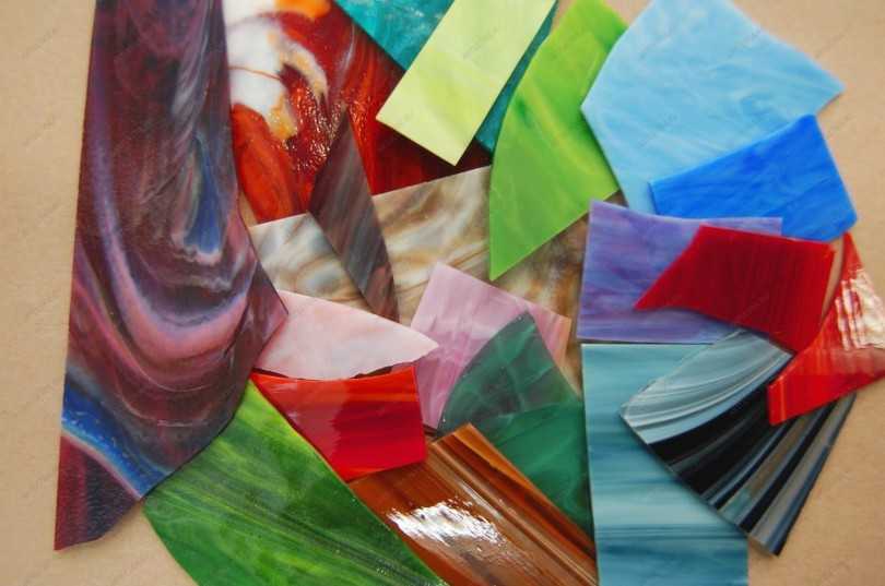 - Осколки разного диаметра. Для создания можно использовать стекло разного оттенка, плотности и текстуры;