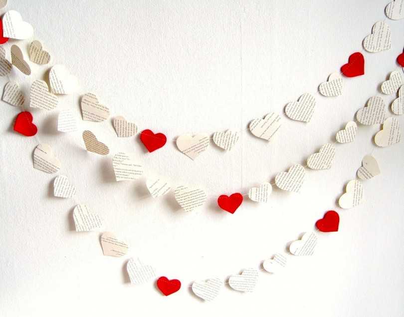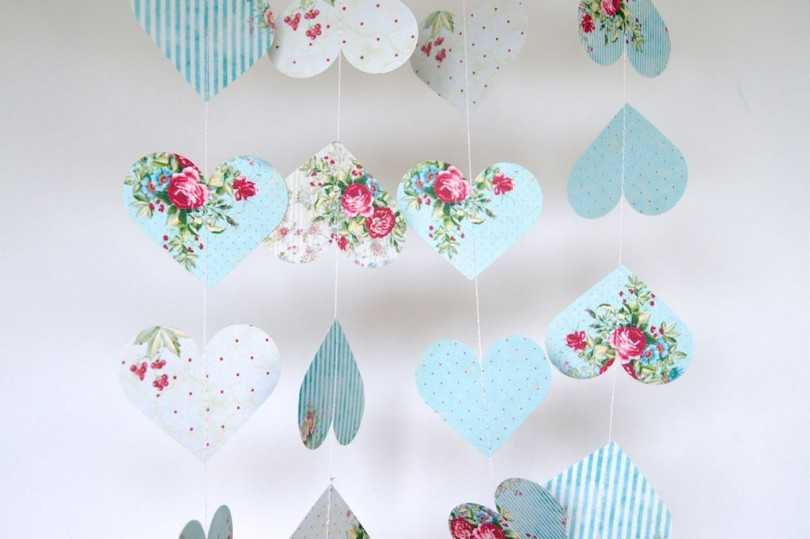 Всем знакомая с детства гирлянда-цепочка очень проста в исполнении, но выглядит объемной и красивой. Даже самые маленькие дети смогут сделать её своими руками. Для того, чтобы сделать гирлянду, нужно нарезать из двусторонней бумаги для скрапбукинга полоски, шириной 1,5-2 см.