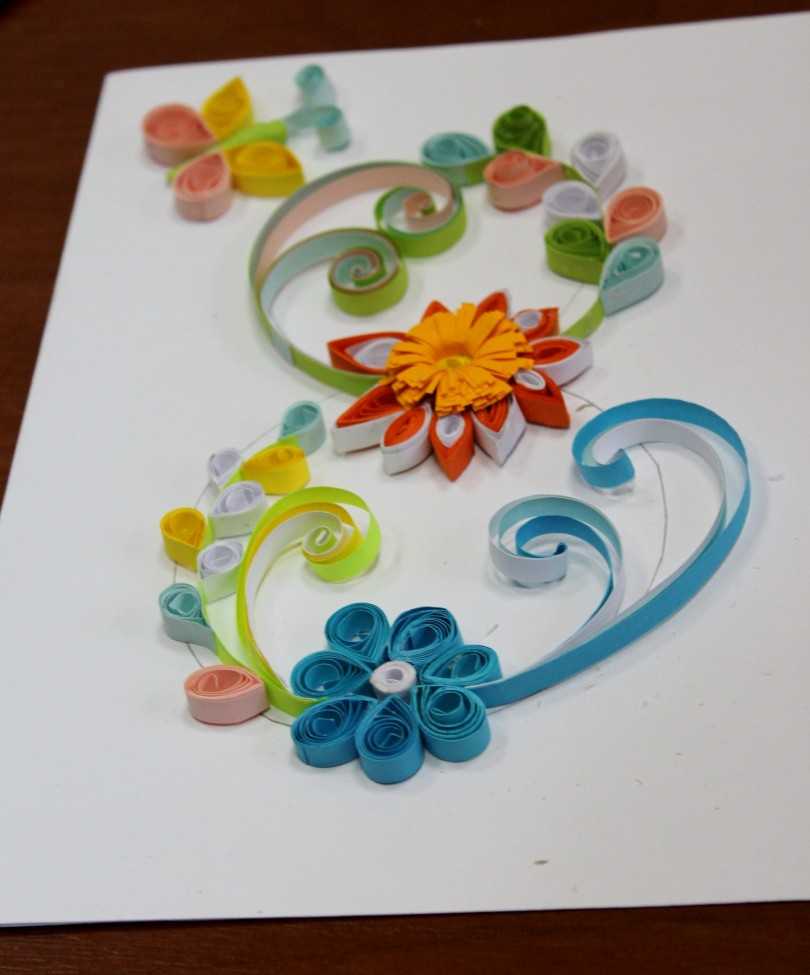 Третий вариант поделок немного отличается от первых двух. Для изготовления которого понадобится немного больше времени и терпения. Но такие виды поделок из бумаги, выглядят очень красиво и стильно. И подойдут не только для детского творчества, а и для декорирования комнаты и еще много разных вариантов применения.