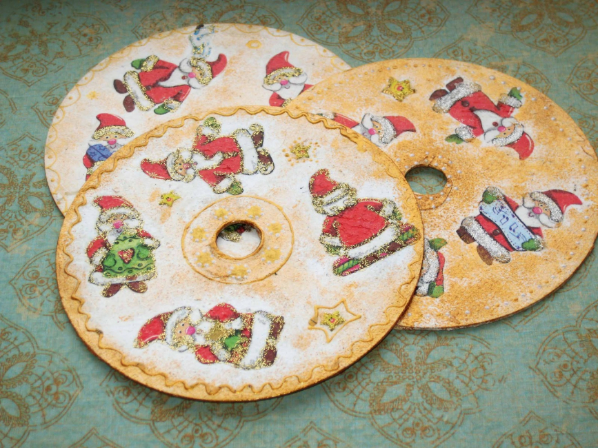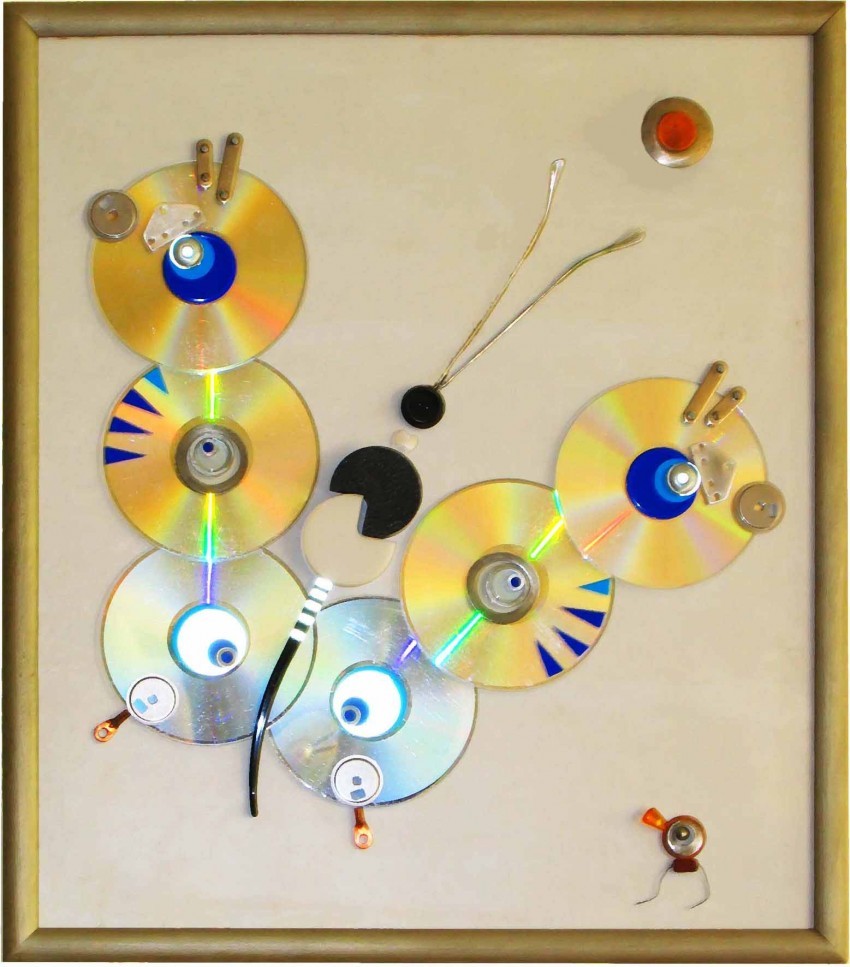 — Диски просто декорируются (обклеиваются, обшиваются, обвязываются) иногда до такой степени, что даже непонятно, зачем в основе нужен компакт-диск, то есть это такой же обычный элемент, как плоская круглая деталь из любого другого материала.