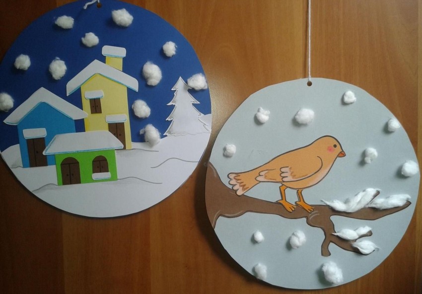 Из «болванок» можно сделать снежинки на окна или стены. Вырезать из них ничего не придется, просто наклейте на диск ваши заготовки и все готово.