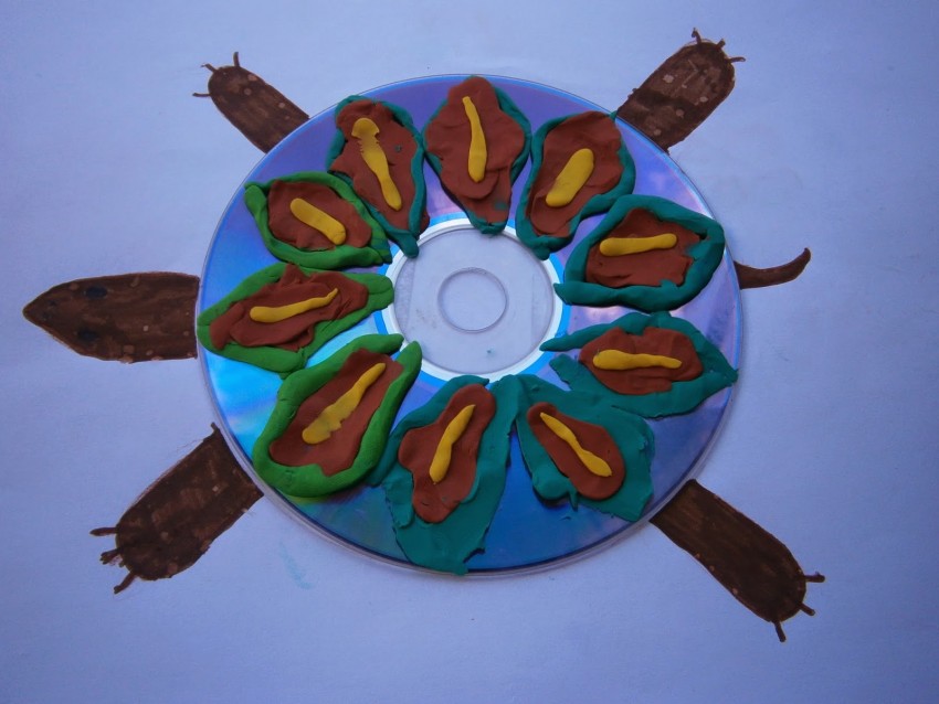 Из дисков можно изготавливать различных животных, таких как рыба, черепаха и другие.