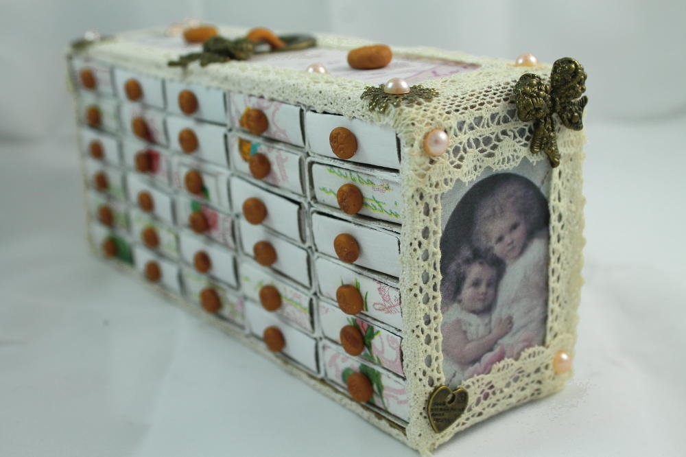 «Коробка с воспоминаниями» пригодится для хранения старых вырезок, фото, мелких вещиц. Главное — что она цела и декоративно отделана, ее приятно держать в руках, а даже в пыли на антресолях она будет смотреться лучше, чем обычная коричневатая.