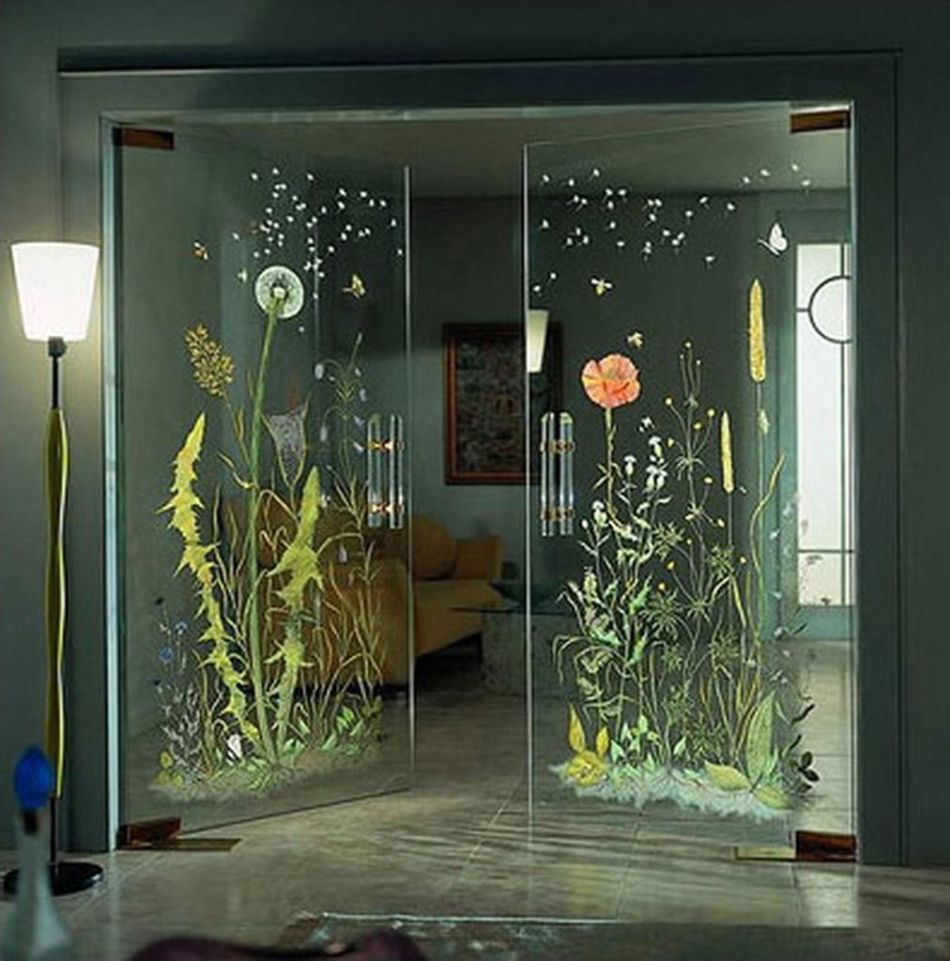 - Стеклянными. В основном такие двери применяются, чтобы разграничить и зрительно расширить комнату.
