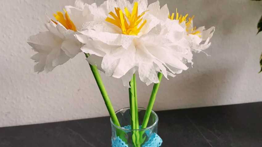 Детский мастер-класс по ручному труду «Ромашка» с использованием гофротрубочек из бумажных салфеток