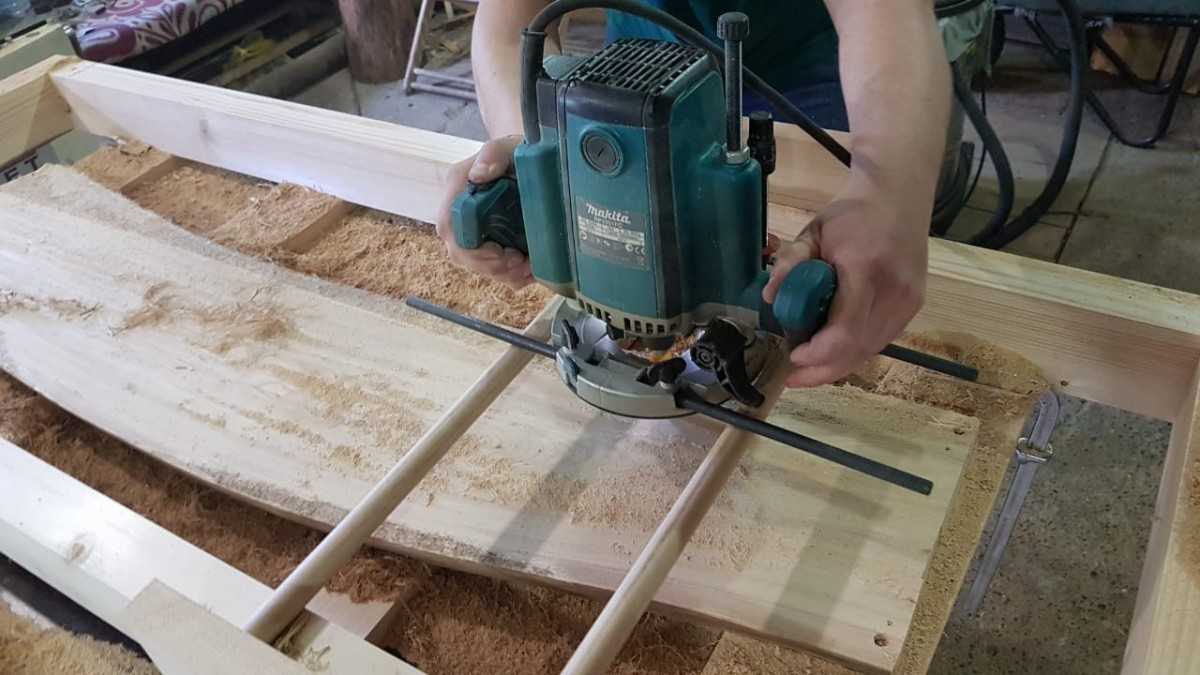 Для начала заготовку следует разделить на две равные части. На одной из них наметить линию разреза, совпадающую с будущей формой башмака. И вырезать при помощи пилы. Аккуратнее это получится сделать при помощи электроинструмента. Далее вам предстоит обработать заготовку, убрав шероховатости на плоской поверхности, а также разгладив неровности на спиле.