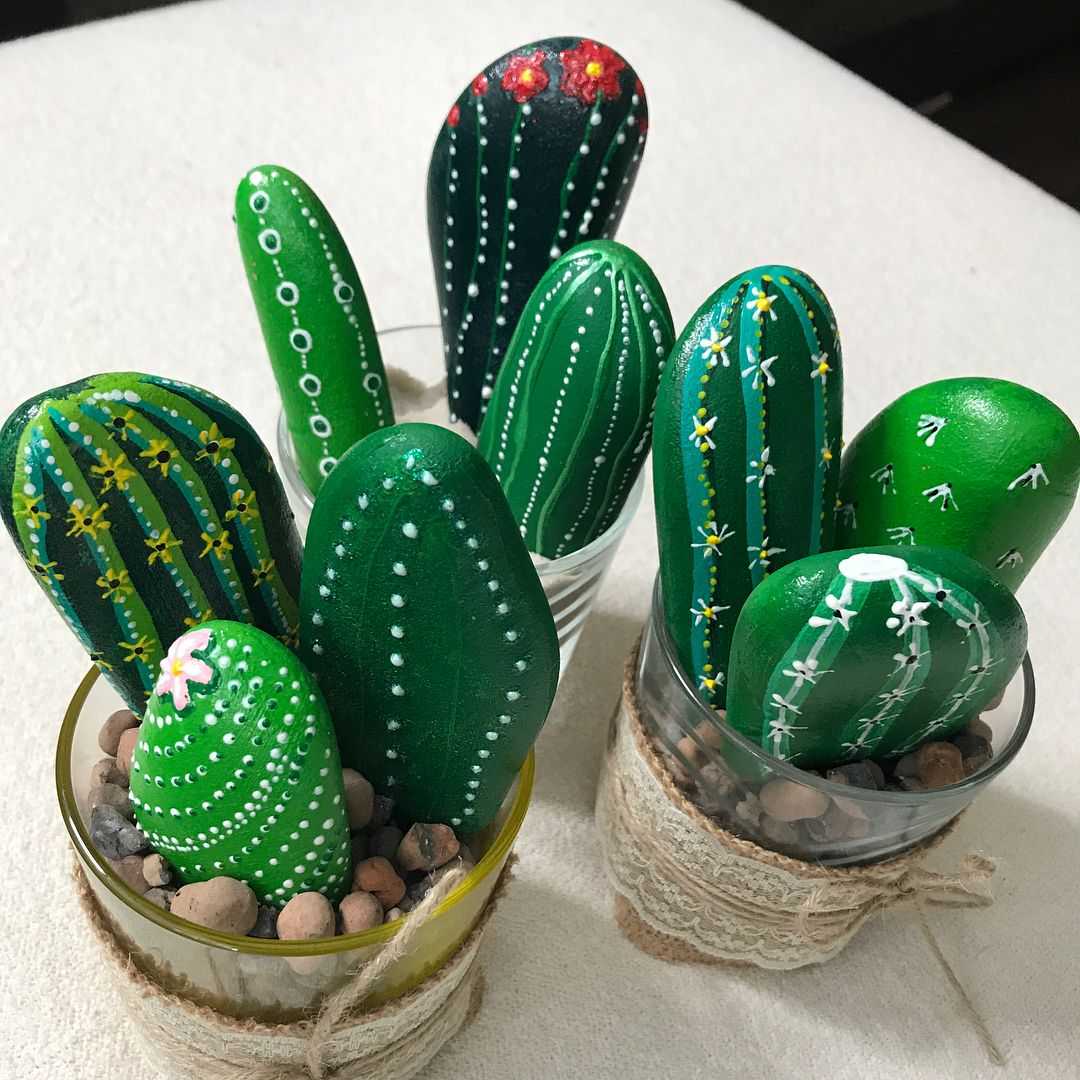 - Получившиеся кактусы помешают в цветочный горшок с наполнителем и закрепляют.