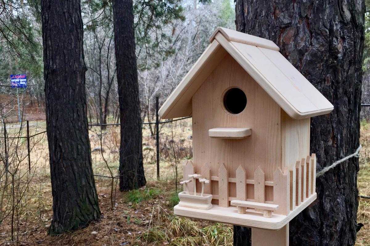 Поделки из дерева для сада и декоративный домик-скворечник для сада своими руками