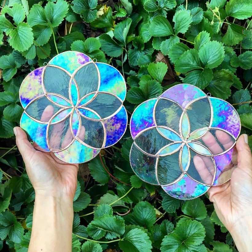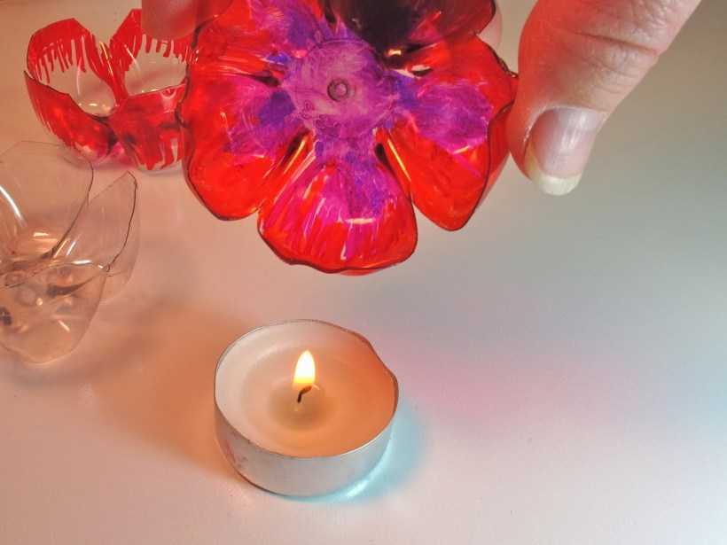 Можно использовать, как прозрачный материал, так и окрашенный в изысканные пастельные тона. Для скрепления отдельных деталей применяют леску. Можно делать элементы выпуклыми, слегка нагревая их.