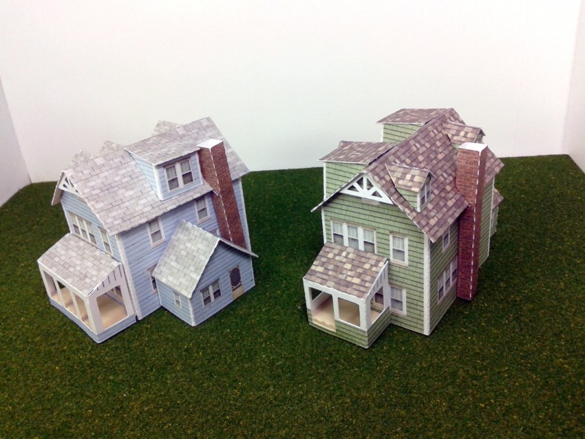 Стены могут быть как строго друг над другом, так и со смещением. Удобно использовать малярный (бумажный) скотч, ведь при дальнейшем декорировании нашего дома, в отличие от обычного скотча, он не помешает приклеиванию будущих обоев.