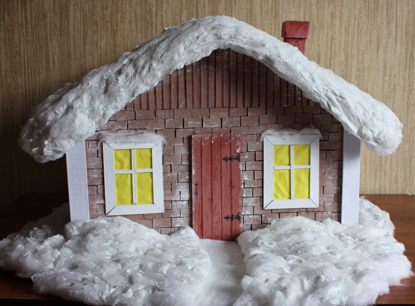 * Использование пены не обязательно. Чтобы имитировать снег можно использовать вату, которую стоит приклеить клеем ПВА.