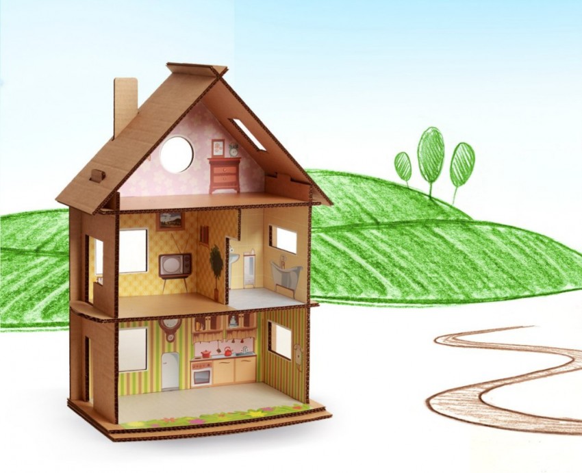 – Из картона вырежьте прямоугольник, который должен быть больше основы домика.