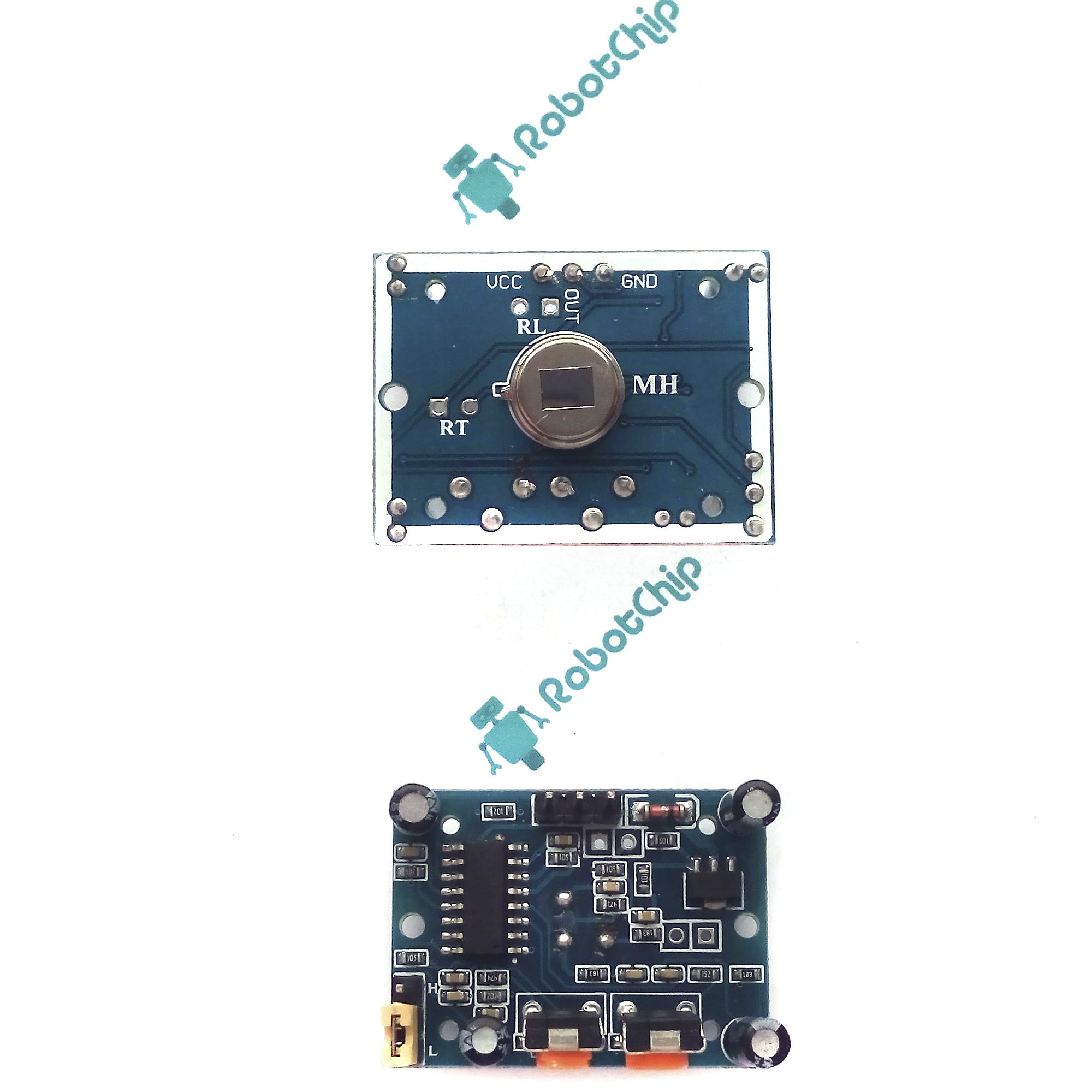 На плате также установлены два потенциометра для настройки нескольких параметров:► SENSITIVITY — устанавливает максимальное и минимальное расстояние (от 3 метров до 7 метров).► TIME (ВРЕМЯ) — время, в течение которого выход будет оставаться HIGH после обнаружения. Как минимум, 3 секунды, максимум 300 секунд или 5 минут.