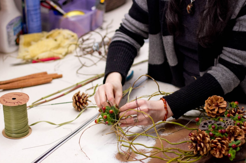 Пробуем размещать ветки по-разному, пока венок не приобретет понравившийся внешний вид.