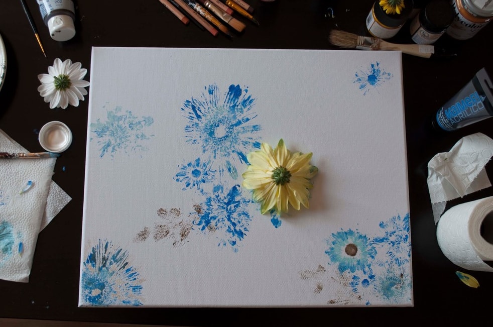 Обратите внимание, что рисовать удобнее всего большими цветами. К примеру, хризантемы, розы и ромашки – идеальный вариант