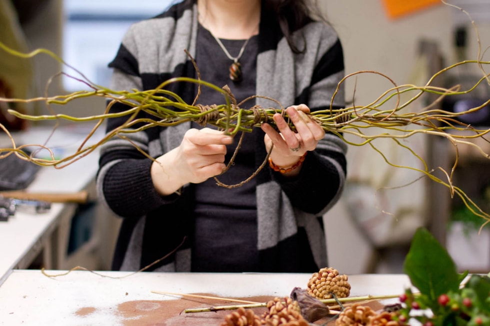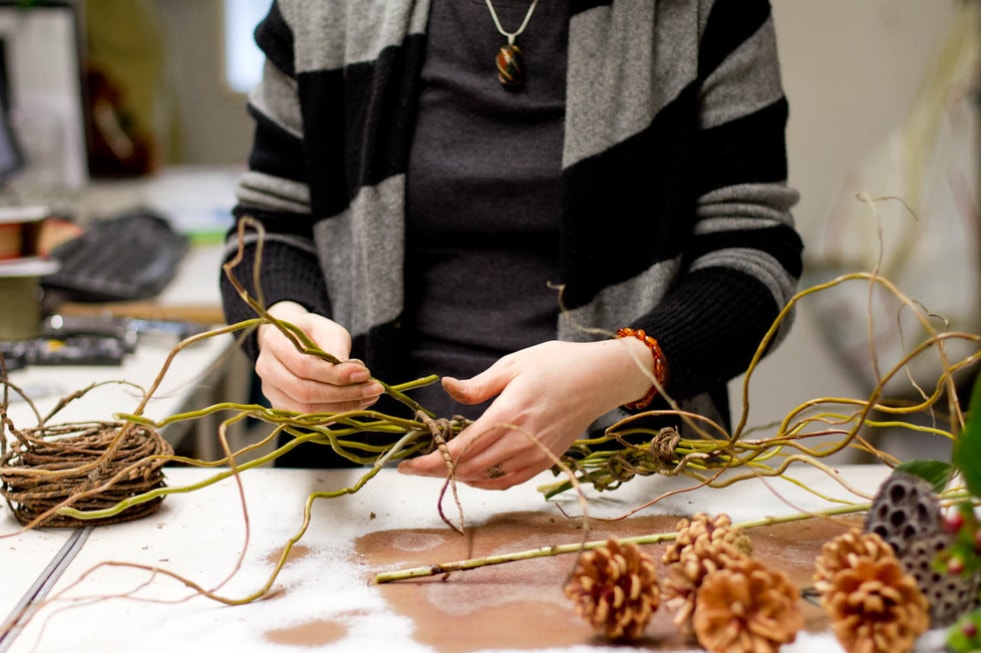 Аккуратно сгибаем два края из побегов и придаем им форму венка.