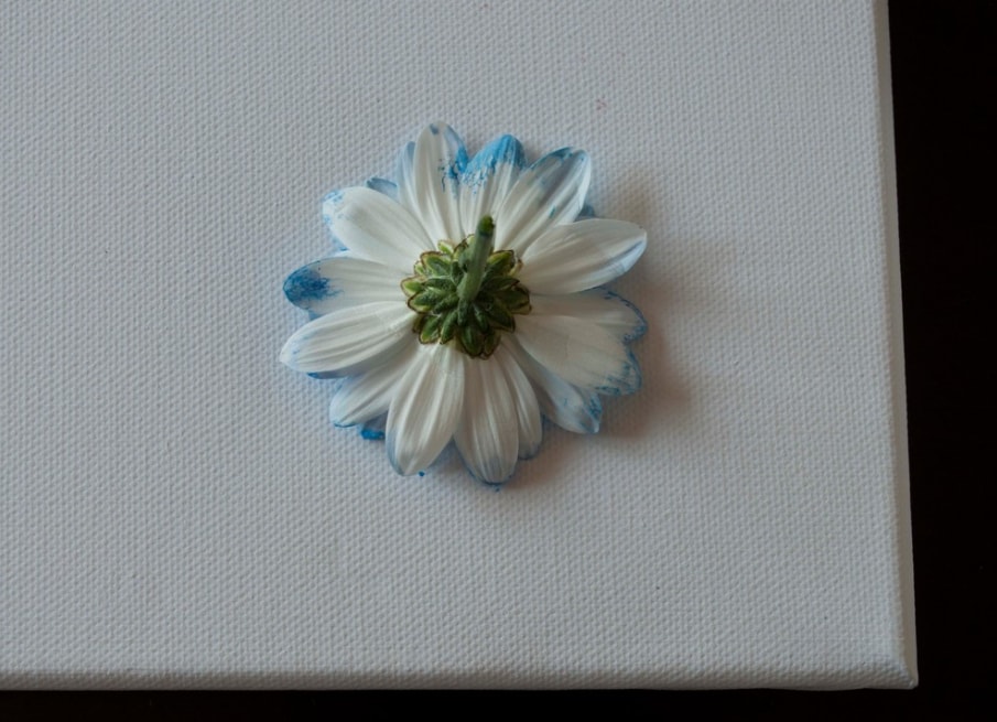 Опускаем бутон в краску и аккуратно прижимаем его к холсту.