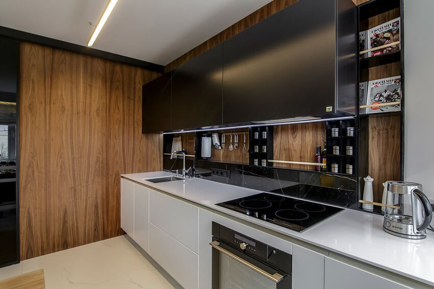 Выбирая отделку для кухонных стен, стоит уделить особое внимание ее дизайну и палитре. По внешнему виду она должна сочетаться с гарнитуром, предметами интерьера или бытовой техникой
