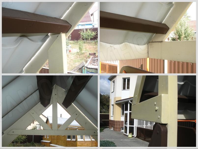 Из готовых опор собирают каркас. Для соединения применяют крепежные элементы: подойдут железные уголки и шурупы по дереву диаметром 8 мм.