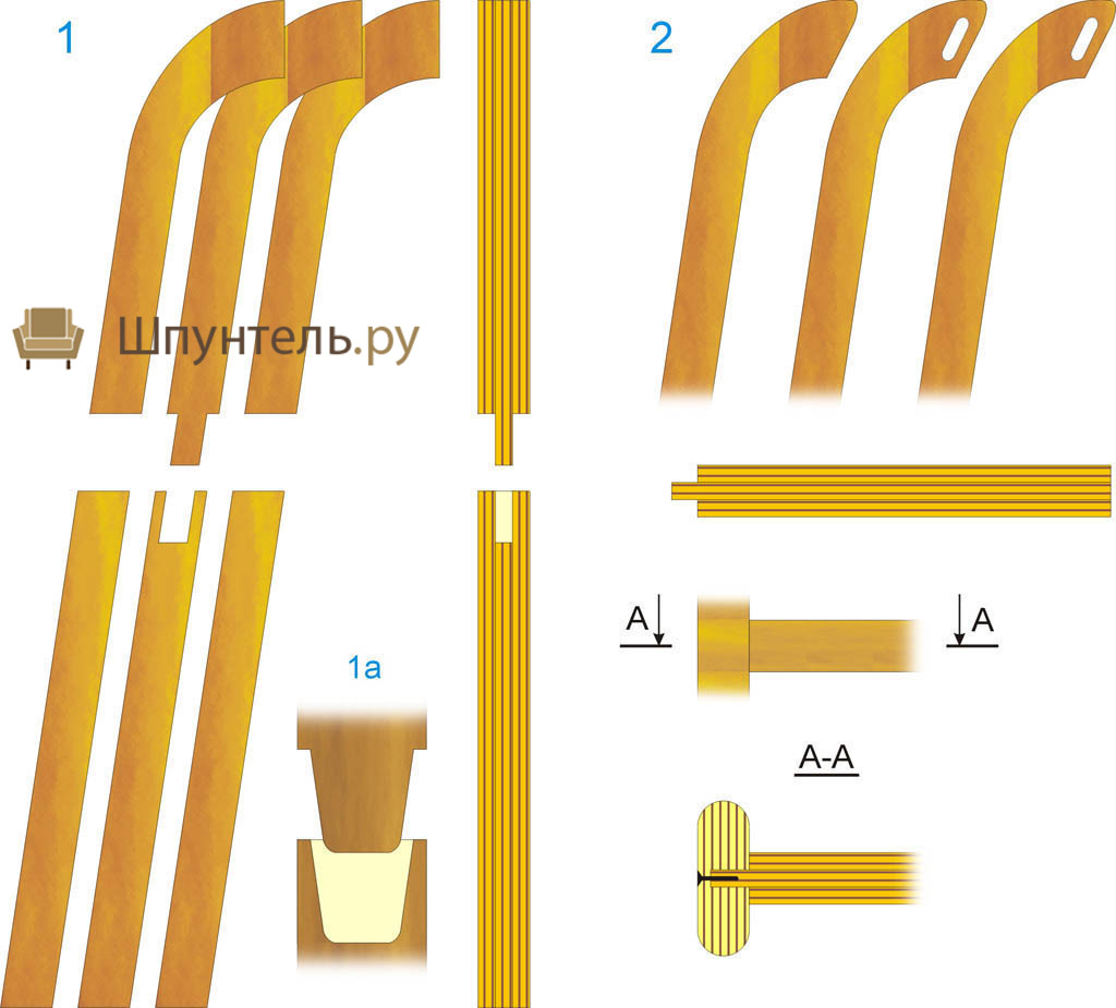 Как видим, дома простым ручным инструментом достаточно качественно выполнима только поз. #1. Поз. #2 и #3 у начинающего столяра получатся вручную с грехом пополам, а для поз. #4 и хорошему профессионалу не обойтись без мастерской и специального оборудования. А теперь – тс-с! – все это может сделать дома «полный чайник», пользуясь только электролобзиком и немного стамеской. Если заготовки деталей набрать на клею из 3-х слоев фанеры толщиной, соответственно, в 1/3 требуемой. Помимо прочего, данная технология позволяет собирать детали сложной формы из маломерных фрагментов, что дает возможность плотнее, т.е. экономно, кроить материал.