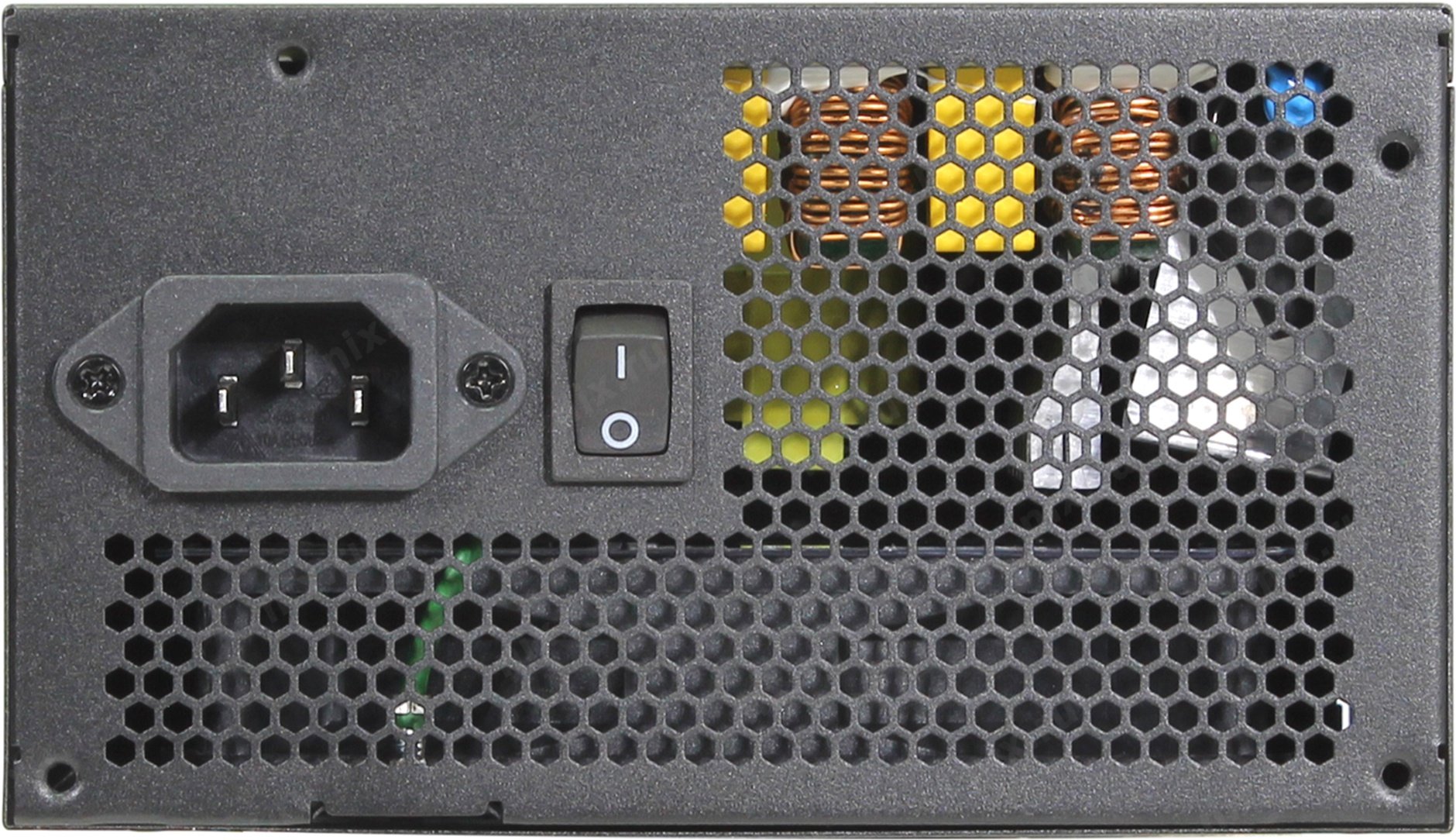 Большинство типичных блоков питания оснащены сетевым выключателем и кулером для активной терморегуляции, хотя в ней не все БП нуждаются. И не у всех из них есть вентиляционная решётка – у серверных версий, в частности, это редкость.
