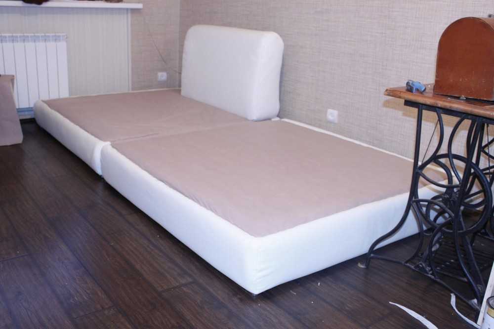 Диваны можно изготовить из материалов, оставшихся от отслужившей, разобранной мебели. Створки дверей от старого шкафа идут на производство основания и спинки. Со створок снимают старое покрытие и грязь, зачищают шлифовальной машиной. После наносят краску или клеят шпон. Одну створку оснащают опорами. Вторую часть оформляют под спинку. К основанию крепят под опредёленным углом спинку. Из куска поролона, обтянутого плотным материалом, а сверху покрытого обивочной тканью, делают мягкую часть мебели.
