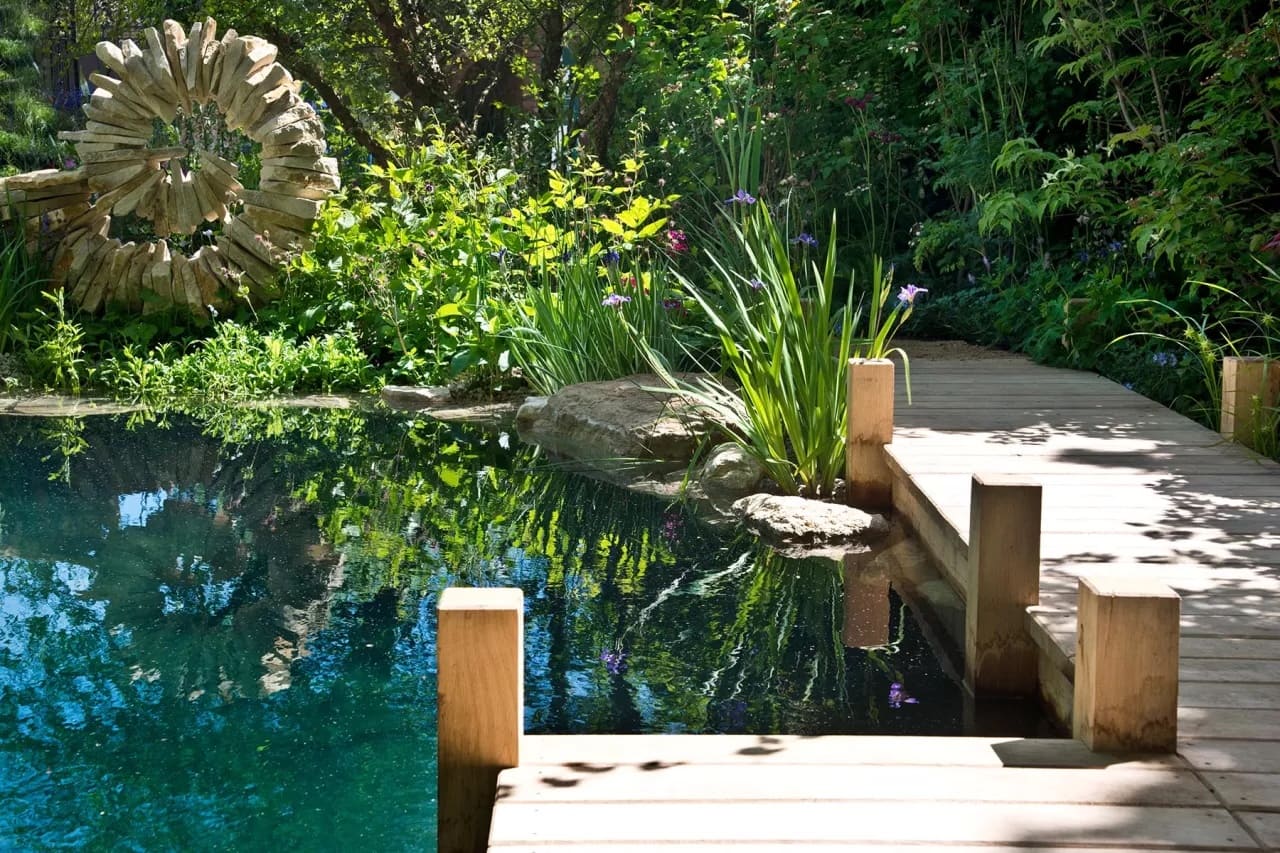 При этом особое внимание уделяется используемым материалам, из которых изготавливаются грядки, ограждения, дорожки и другие конструкции. Этот стиль подразумевает сооружение бассейна, который позволяет расслабиться после работы, а по вечерам наполняет окружающею его территорию теплым светом