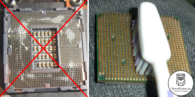 Нужно стараться избегать попадания термопасты на контакты процессора. Если такое случилось, необходимо хорошенько, но аккуратно, почистить контакты