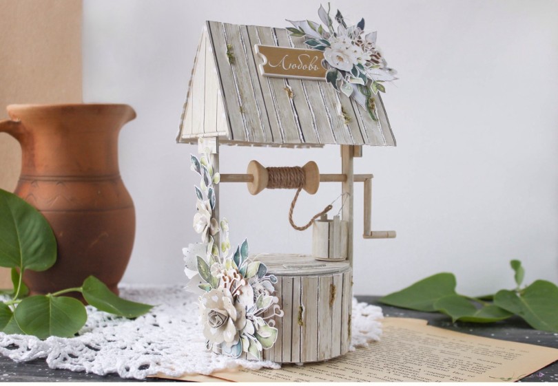 После того, как клей высохнет, обрабатываем древесину. Декорируем. Можно так же сделать миниатюрный навес над колодцем и прикрепить на шпажки.