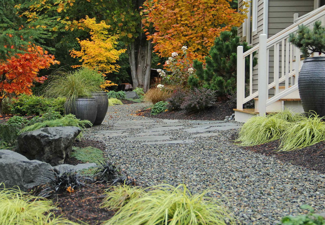 Подобрав гравий или щебень разного цвета, можно украшать дорожки или делить их на зоны