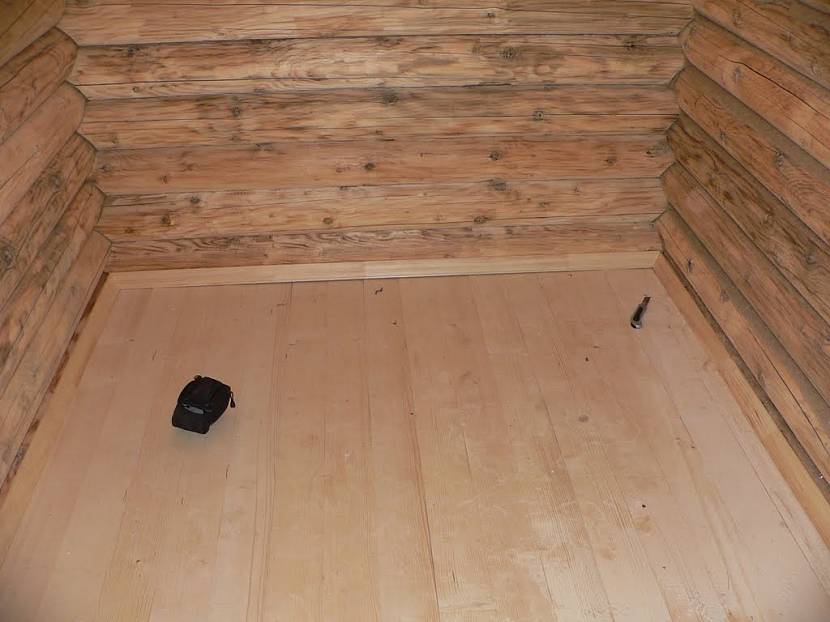 - Укладываются и фиксируются лаги для пола. Лучше всего, если устраивается пол из лиственницы в бане, но подойдет для этого и более привычная сосна.