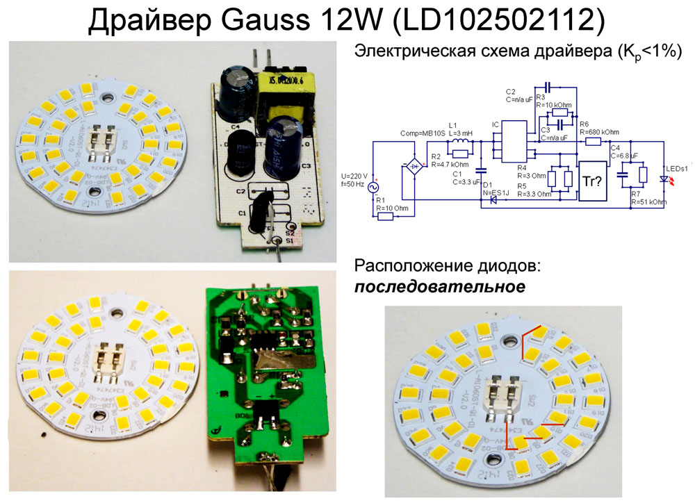 Схема драйвера светодиодной лампы 220 В состоит из:
