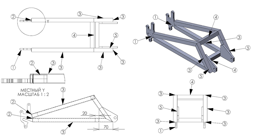 Наш трицикл будет представлять собой единую конструкцию из ЗАЗ-968 и «Урала». Но для того, чтобы собрать таковую, необходимо иметь чертеж, благодаря которому можно наглядно убедиться в расположении всех деталей и комплектующих.