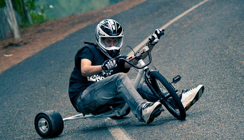 Мало кто видел трехколесный велосипед на дороге, поэтому многие и понятия не имеют, как он выглядит и тем более как он движется. Стоит отметить, что педали на этот транспортном средстве абсолютно не нужны и являются лишним элементом конструкции. Весь смысл дрифтинга, заключается в спусках с горок.