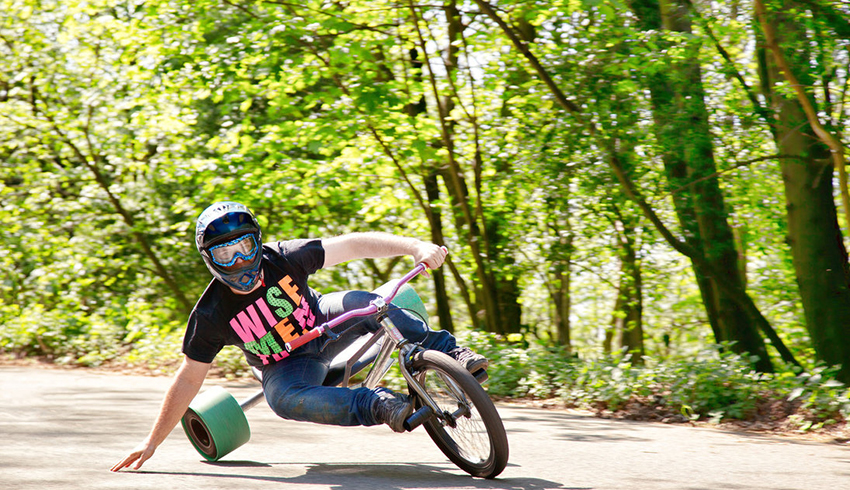 Для того чтобы совершать захватывающие трюки на трехколесном трайке нужно разгоняться до 60 км/ч. Многие велосипедисты на специальной трассе для дрифта на этом велосипеде проделывают своеобразные движения в виде змеек, или заваливаются на бок. Это конечно опасно, но оно стоит того.