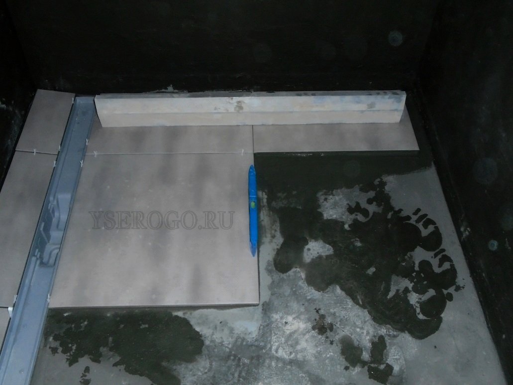 квадратного или прямоугольного трапа. Из этого вытекает данность, что плитку придется подрезать на гранях-переломах, исключением является квадратное дно поддона с