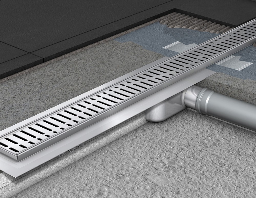 - пристенными – точечный или линейный тип, дополнительно оборудованный встраиваемым в стену приемником воды.