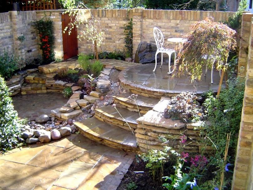 Ступеньки и разнообразные площадки для отдыха обустраиваются на садовых дорожках в случае сложного рельефа участка, такие конструкции помогают сэкономить свободное пространство и использовать его с максимальной пользой.