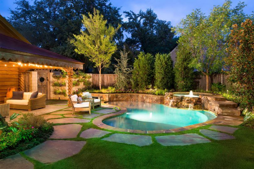 Создать гармоничную атмосферу естественности природы поможет искусственный водоем. Если площадь участка маленькая, это может быть небольшой пруд, на обширных территориях есть возможность построить бассейн. Для создания маленького пруда понадобится выкопать неглубокую ямку, дно которой можно застелить пленкой.