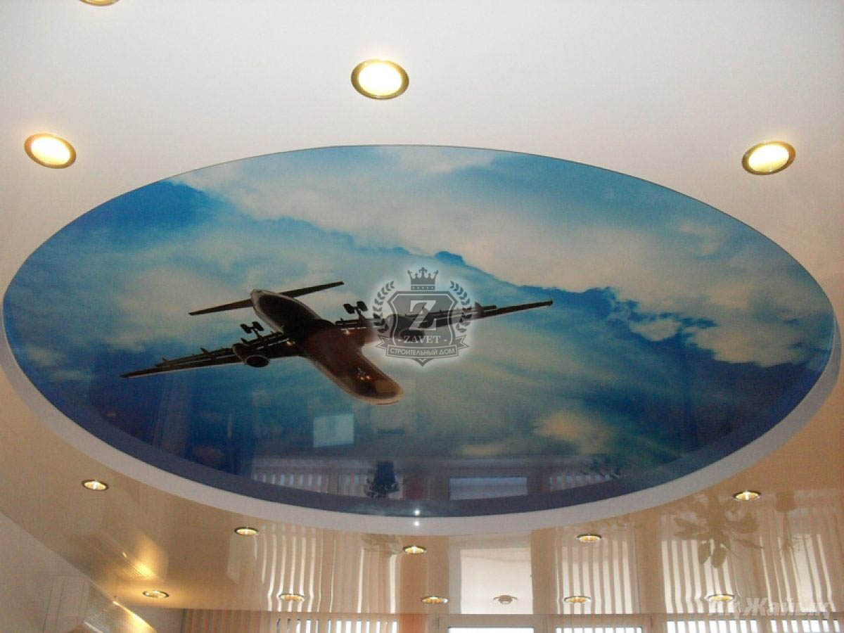 - Полотна с печатью. 2-уровневые натяжные потолки с такими полотнами содержат любой рисунок или любимые фотографии.