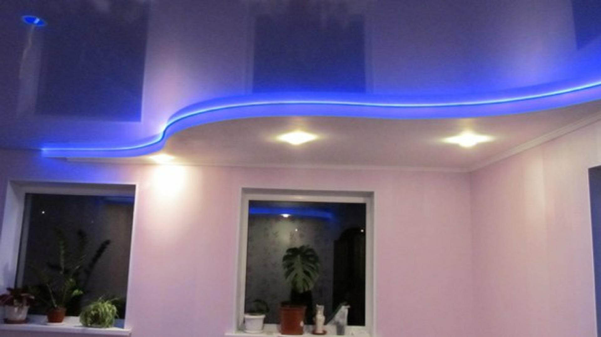 Принципиальная схема и элементы конструкции двухуровневого натяжного потолка