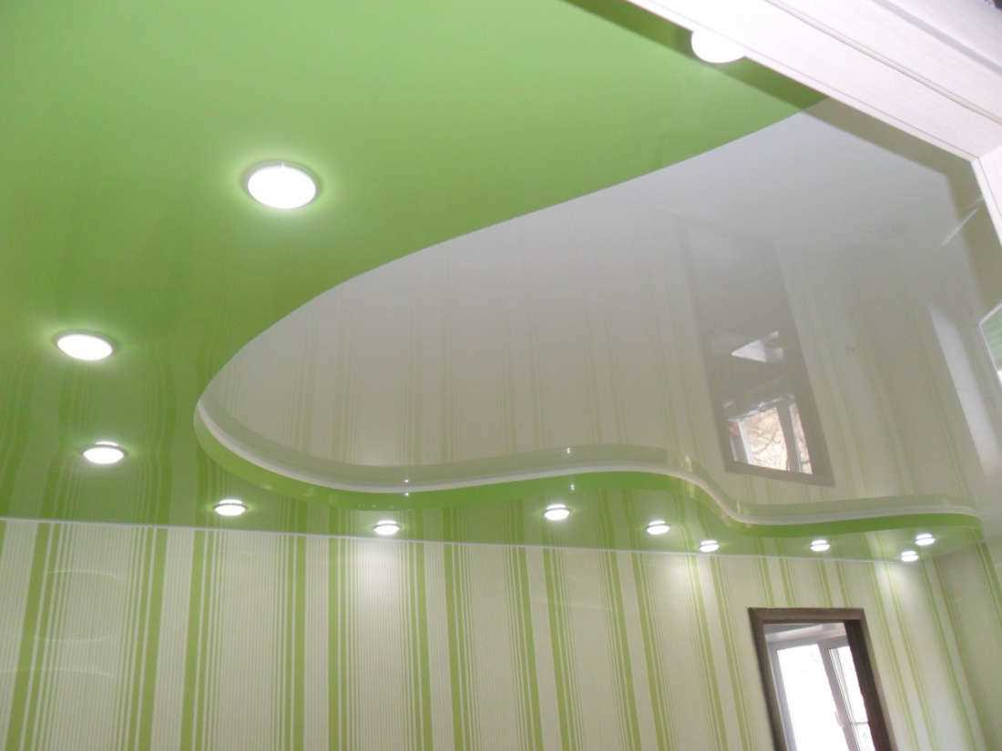 Световые решения с зеленой, оранжевой, желтой, белой или красной подсветкой, делают потолочную конструкцию более изысканной.