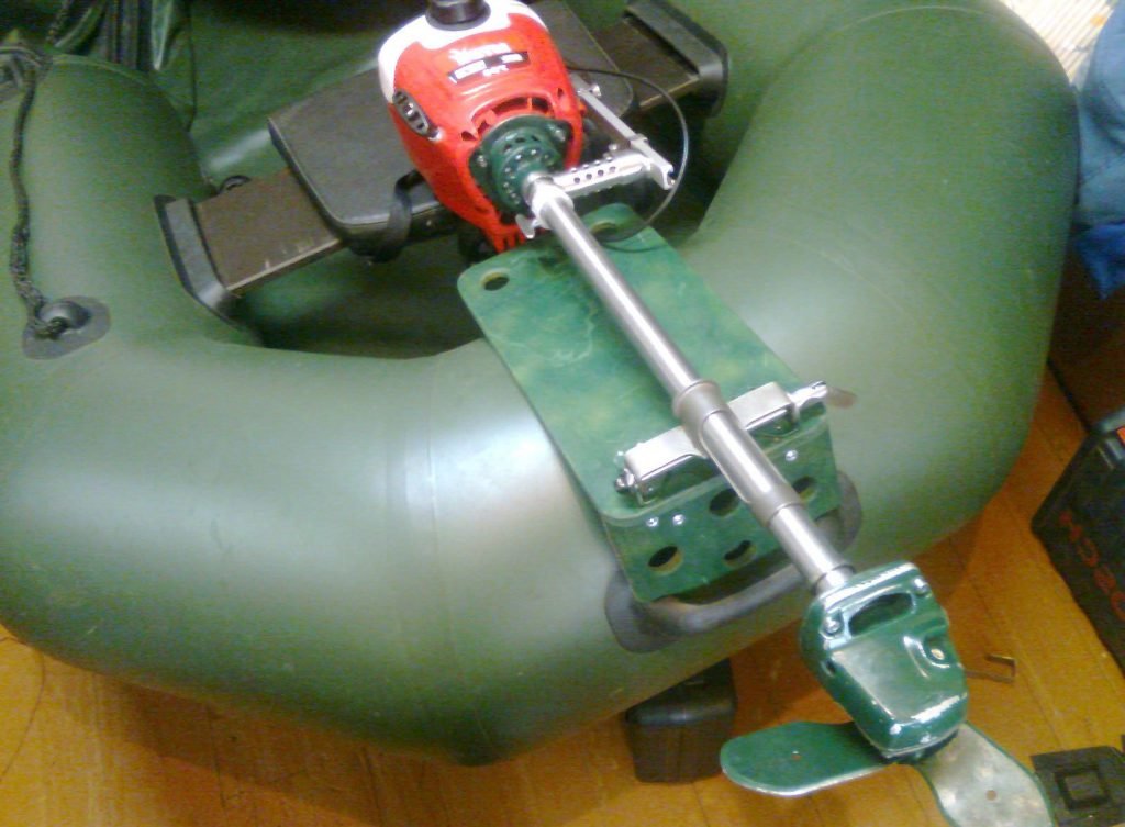 - при подвешивании на транец сгодится механическая часть от болгарки;