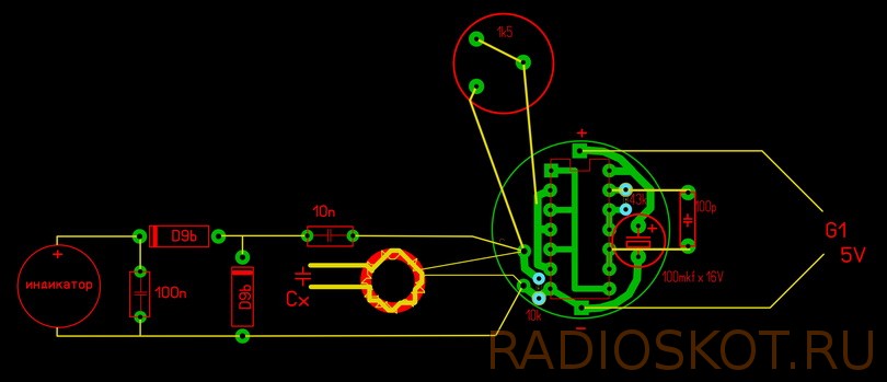 Точность показаний в диапазоне 0,01…0,1 Ом позволила отбраковать сомнительные и не выбрасывать старые выпаянные, но имеющие нормальную ёмкость и ESR конденсаторы. Прибор прост в изготовлении, детали доступны и дёшевы, толщина дорожек позволяет их рисовать даже спичкой. На мой взгляд, схема очень удачна и заслуживает повторения.